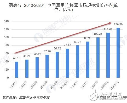 工防接插件是侦察机、导弹、智能炸弹等新式高性能武器装备的必备元器件,主要应用于航空、航天、兵器、船舶、电子等高技术领域。根据中国产业信息网数据,预计2025年中国工防信息化开支将增长至2513亿元,占当年工防装备费用的比例超过4成,工防信息化支出显著提升。2010年我国工防接插件市场规模仅40.16亿元,预计到2020年国内工防接插件的市场规模将达124亿元,自2010年以来年复合增长率为10.8%。随着队伍信息化程度的不断提高和队伍现代化建设的加快,必将带来大量新式装备需求的增长,工防接插件市场规模有望持续扩大。