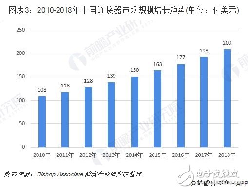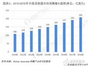 根据Bishop&Associate,2018年中国地区接插件市场规模为209亿美元,较上年同比增长9.42%,占据了全球31.4%的市场份额,是全球最大的接插件市场。接插件作为实现信息化的基础元器件,受益于信息化建设投入不断扩大,2010年到2018年,我国接插件市场规模由108.33亿美元增长到209亿美元,年复合增长率8.56%,显著高于全球同期4.8%的增速。