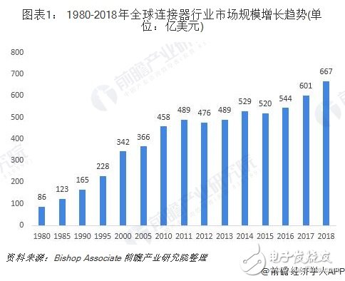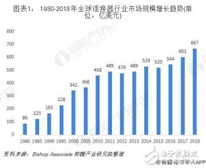 随着下游产业的发展和接插件产业本身的进步,接插件已经成为设备中能量、信息稳定流通的桥梁,总体市场规?;颈3肿盼榷ㄔ龀さ奶?。根据Bishop&Associate的统计, 2018年全球接插件市场规模达667亿美元,较2017年提升了11%,连续两年保持两位数的增长率,且自2012年以来年复合增长率约为5%。