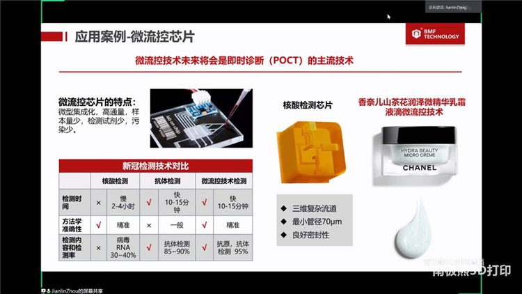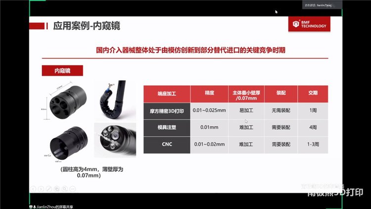 最后,周总列举了摩方材料合作的4个高精密3D打印的应用案例,包括:精密接插件、内窥镜、青光眼导流钉、微流控芯片。3D打印在这些高精密部件的制造中发挥了其优势。