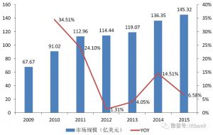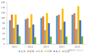 ▲2011-2015年全球主要国家/地区接插件市场规模(亿美元)