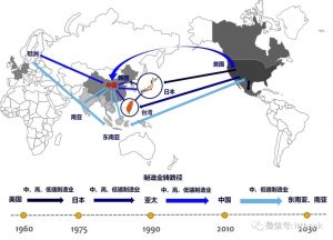 全球制造业转移路径:美国→日本→亚太→中国→东南亚。世界制造业的发展历史就是高端国不断把本国制造成本高的中低端产业转移到具备基础条件的次级国,通过这样的链条一级一级的传递下去。次级国取得先进国的技术和资金,不但可以扩大就业,也可以提高本国的消费,反而促进了市场的扩大,这样形成良性循环。因为人力成本低、当地政府补助、有了一定生产技术基础等利好条件,世界制造业在2000年左右大规模进入中国,国内沿海地区特别是珠三角地区的制造业迅速发展成“世界工厂”,然而之前国内的制造业大多数集中在“中低端”制造业,未来几年国内高端制造业将成为主流。