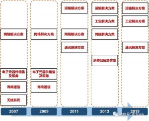 在2015年,公司再次剥离两块业务:网络解决方案、消费品解决方案,又增加了通讯及工业解决方案业务。