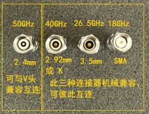 2.4mm接插件,是外导体内径为2.4mm,阻抗50欧姆的接插件而1.85mm接插件,是外导体内径为1.85mm,阻抗50欧姆的接插件了。它们内径尺寸更小,所以工作频率更高,标称频率分别可达50GHz和67GHz。这两种接插件之间机械兼容的,可以互连,不过需要记住的是,他们绝不能与2.92mm,3.5mm或者SMA接插件互相连接,不然可直接导致接插件的损坏!