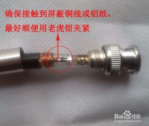 铜线芯用螺丝压紧,铁片要和屏蔽铜线或铝纸接触,要不然视频会不清晰或不稳定,甚至黑屏。最好用老虎钳压紧铁片,以防监控线脱落。另外,屏蔽线不能接触到中间的铜线芯,要不然也会干扰到视频。
