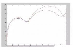 由于网络分析仪测量上的限制,我们必须将兩个SMA接头连接起來(如图一),并且使用时域反射仪测量对接后的SMA接头阻抗是否为50欧,之后再接上网络分析仪进行测量,测量的范围为50MHz到10GHz,测量结果(如图二)。