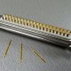 冲针一般是接插件制造的第一步。 电子接插件通过大型高速压力机从薄金属片上冲压而成。 大容量金属带的一端送入冲压机的前端,另一端通过冲压机的液压工作台卷绕在卷带盘上,金属带被拉出,最后,用卷带盘推出并冲压成品。