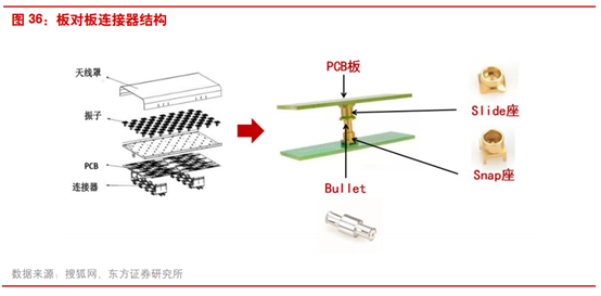 5G时代将采用大规模阵列技术,天线阵列与射频均设计在PCB板上,由于通道数变多使得传统馈线连接方式已不能满足需求,天线阵列与射频收发器将通过板对板方式相连,这意味着接插件的使用数量将大幅增加。