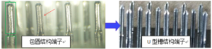 改善建议;①.(冲压类)PIN脚结构即然无法避免,则可以依靠缩短使用周期来改善。比如,镀锡/可焊镍的产品,正常保质期为12个月。那么,客户下订单时,可以与客户确认一下大概的使用日期。尽量让产品在生产后的3个月内使用,产品经过焊锡后。切PIN点已被封闭,异常自然也就不会发生了。②.PIN针中间氧化,原因在结构,改善自然也就在结构。如下图中,将包圆结构改成“U”型槽结构,产品镀层均匀且不会有风/烘干问题存在,自然就解决了。