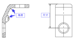 ②.带支架的接插件,多数为板端(前面所说的弯插板类型)使用。对整个产品来说,是起到一个辅助固定作用的。所以,外观和尺寸要求并不严格,塑胶类型最常见的仅成型批锋一项。铁、铜支架需要特别注意成型的角度,和匹配产品PCB板孔位的间距尺寸(如右图),此两点影响着接插件与PCB板的贴合效果。