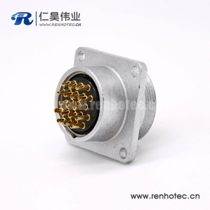 插座 公头P24 17芯直式接插件方形四孔法兰安装焊杯接线