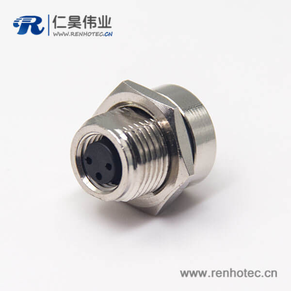 料号:RHT-634-1097 标签:M8,3芯,板端插座,母头,直头,面板安装,前锁板,插PCB板
