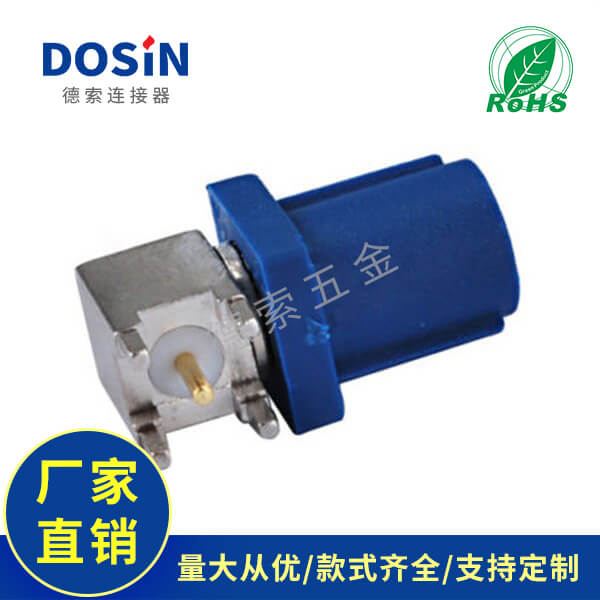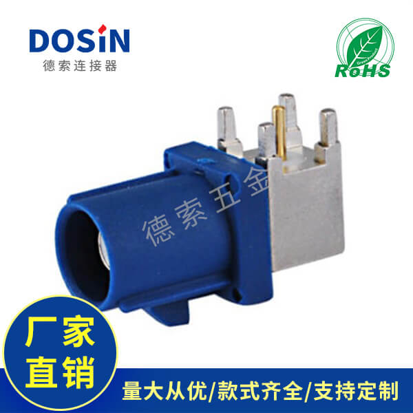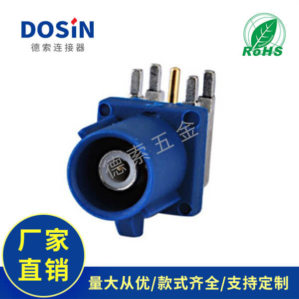 Fakra SMB连接器C型公头蓝色弯式PCB插孔安装定制打样