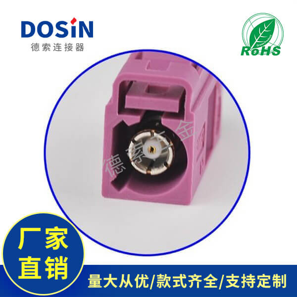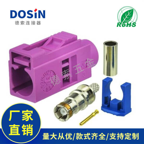 Fakra汽车连接器H型母头紫红色压接焊接接线RG316-RG174定制打样