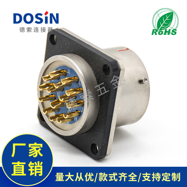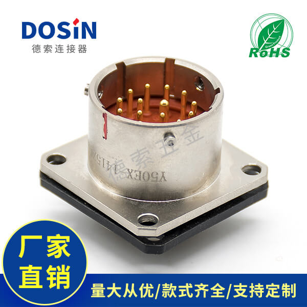 法兰安装连接器Y50EX直式公插座15芯焊杯镀镍定制打样
