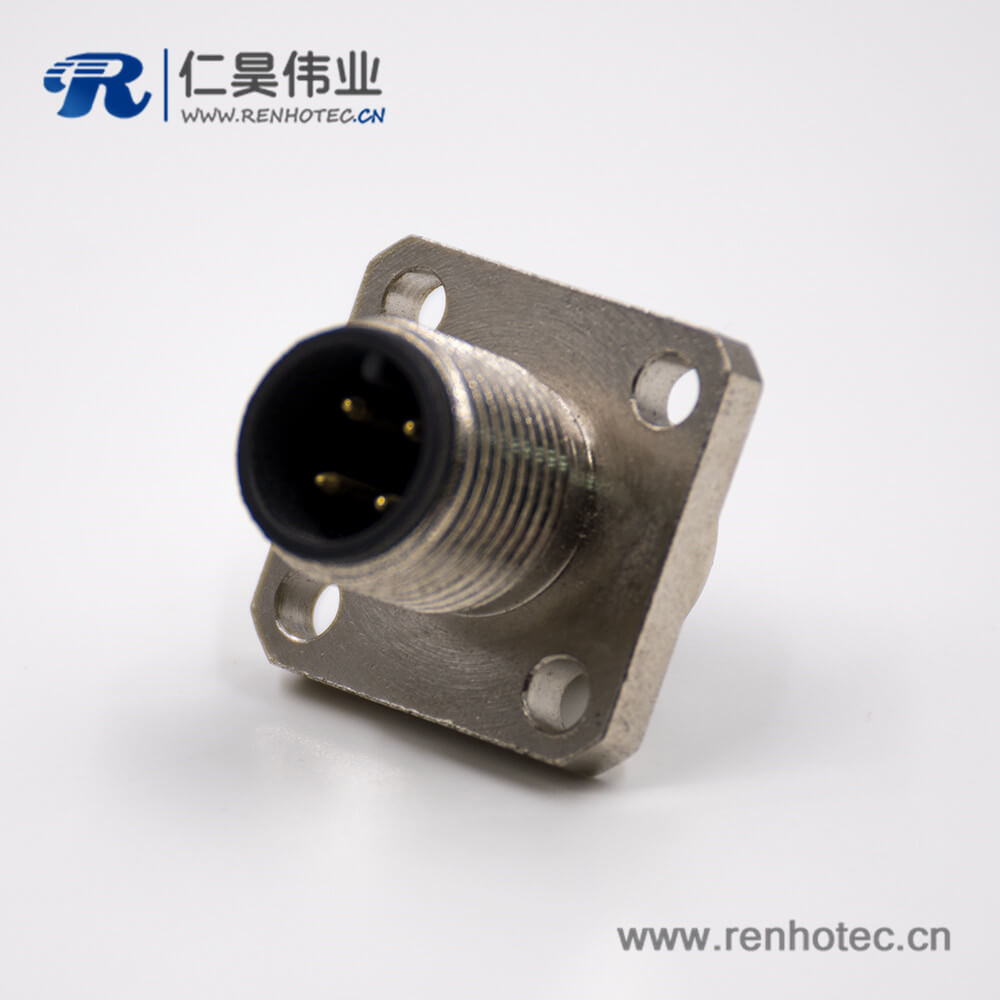 料号:M12-04-A-P-2-S-H 标签:M12板端插座,A扣,4芯,直式,公头,面板安装,4孔法兰