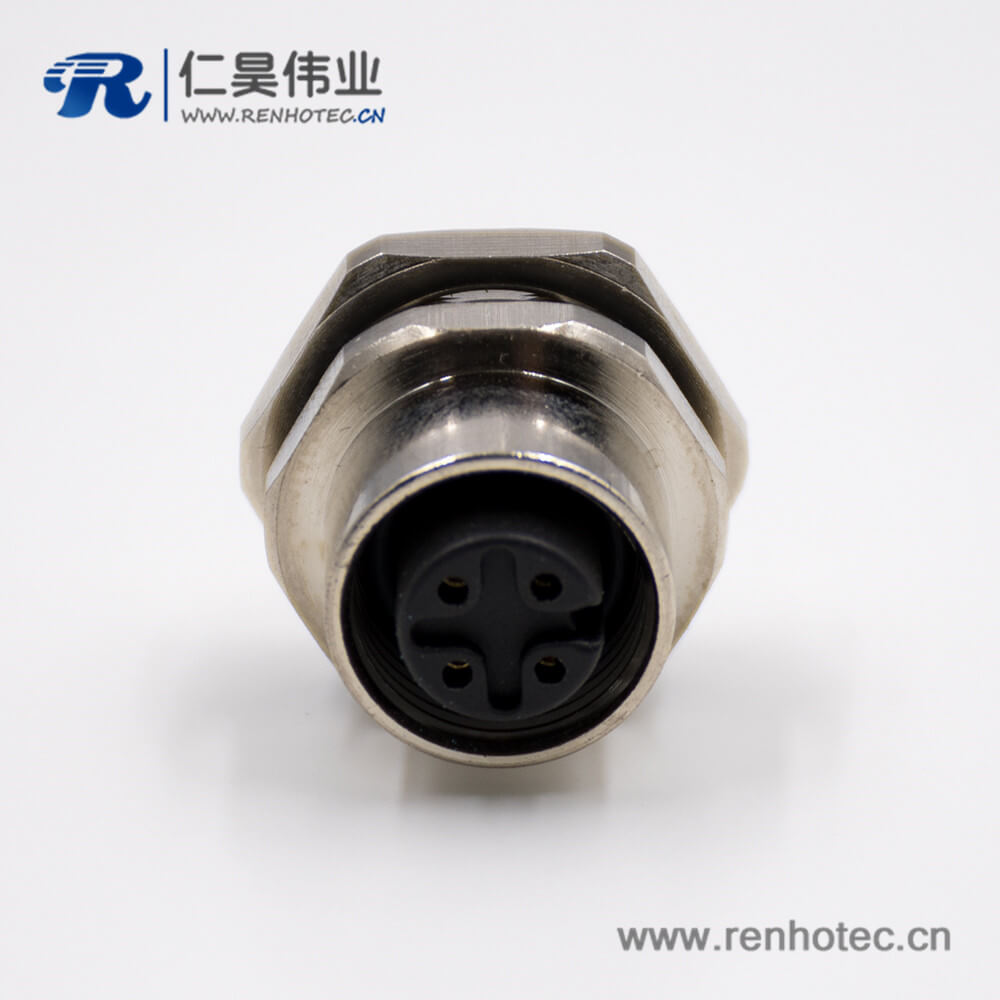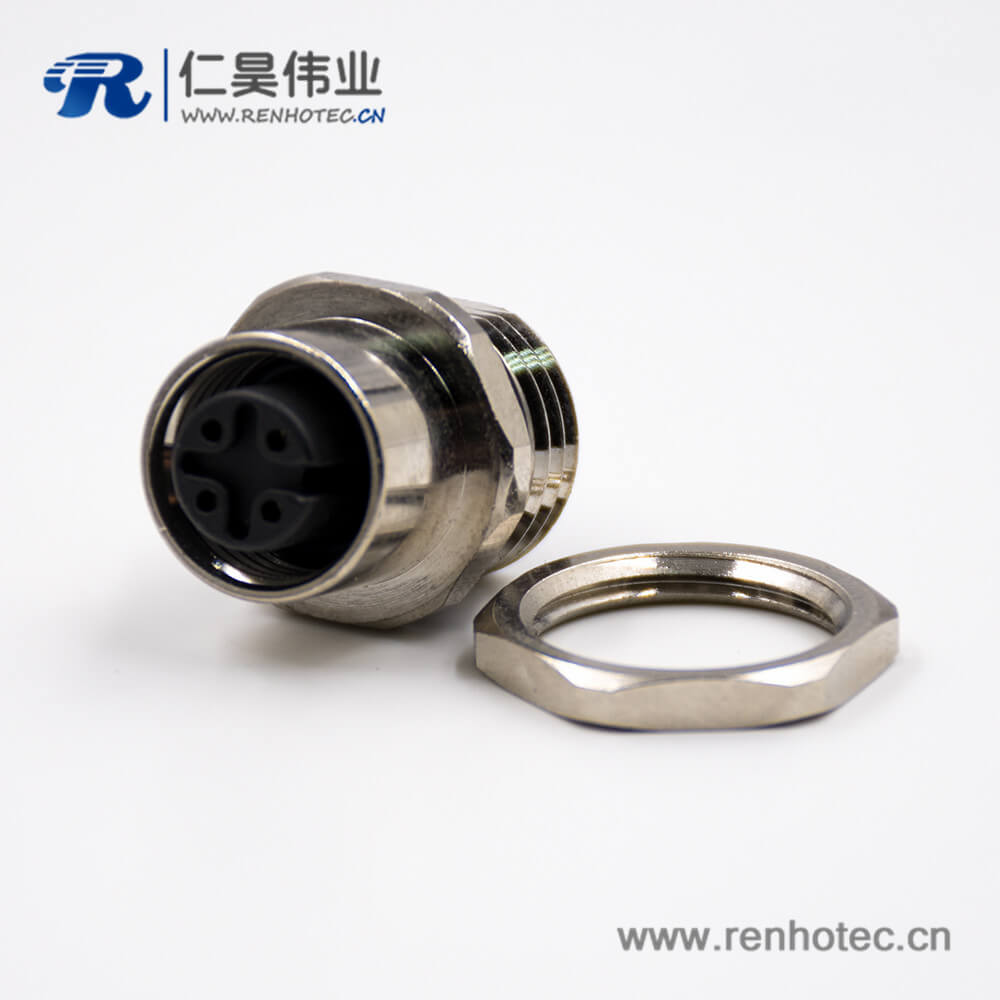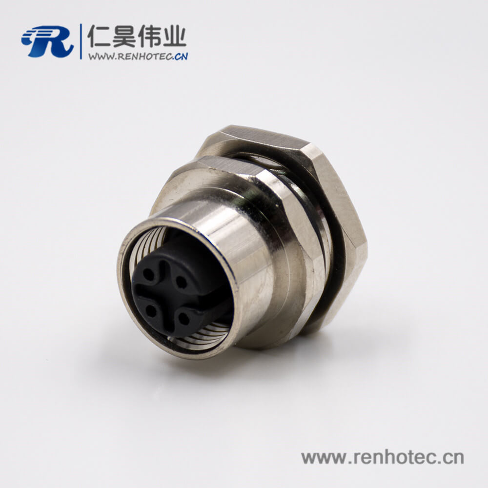 料号:M12-04-A-S-2-S-B 标签:M12板端插座,A扣,直式,4芯,母头,后锁板,接线,焊接式