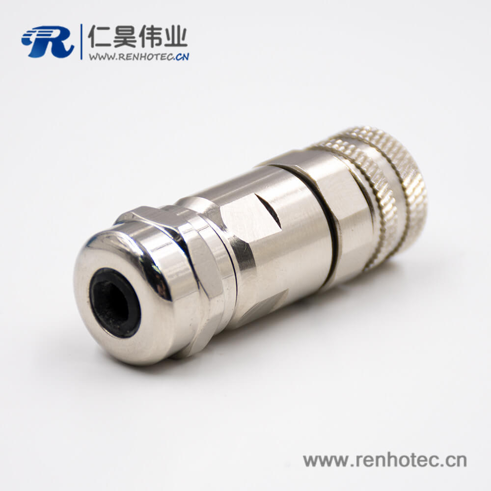 标签:M12组装接头,D扣,4芯,母头,直式,接线,螺丝锁线,带屏蔽,全金属