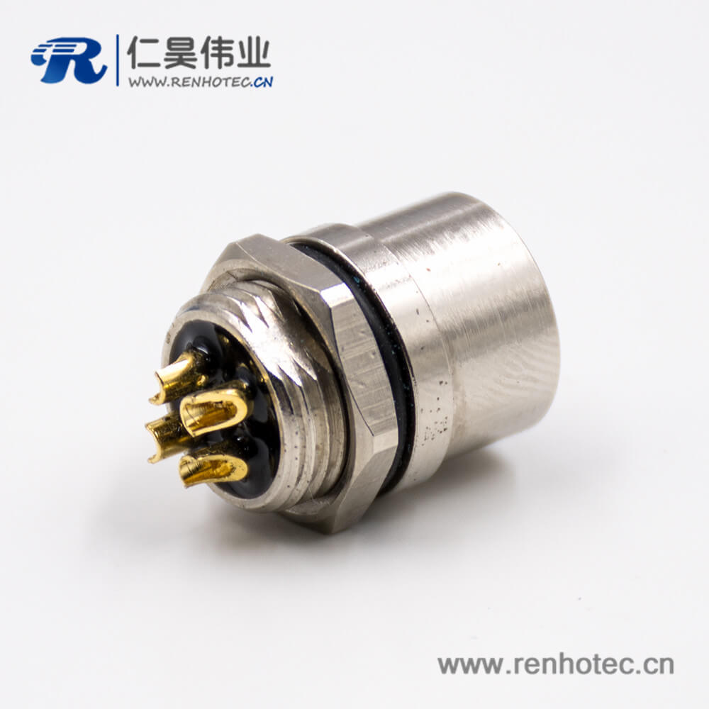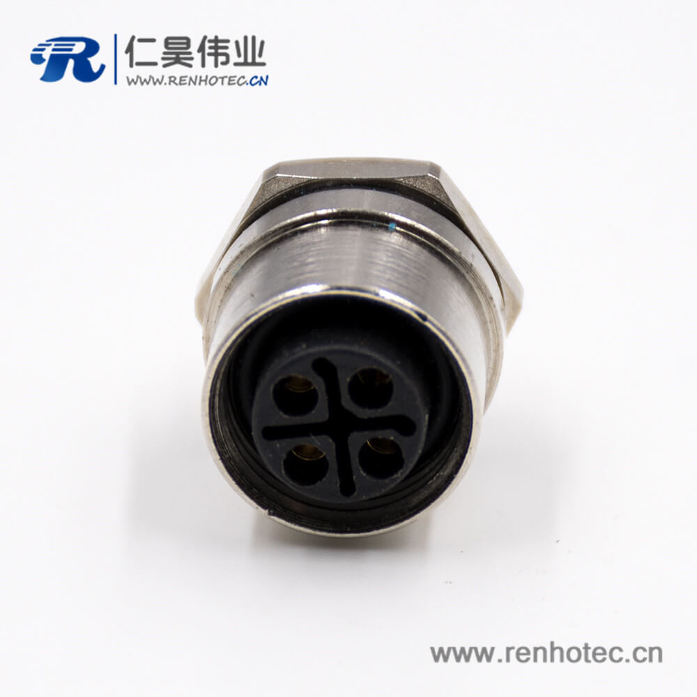 料号:M12-04-S-S-2-S-B 标签:M12,4芯,S扣,母头,直式,后锁板,板端插座,接线,焊接式