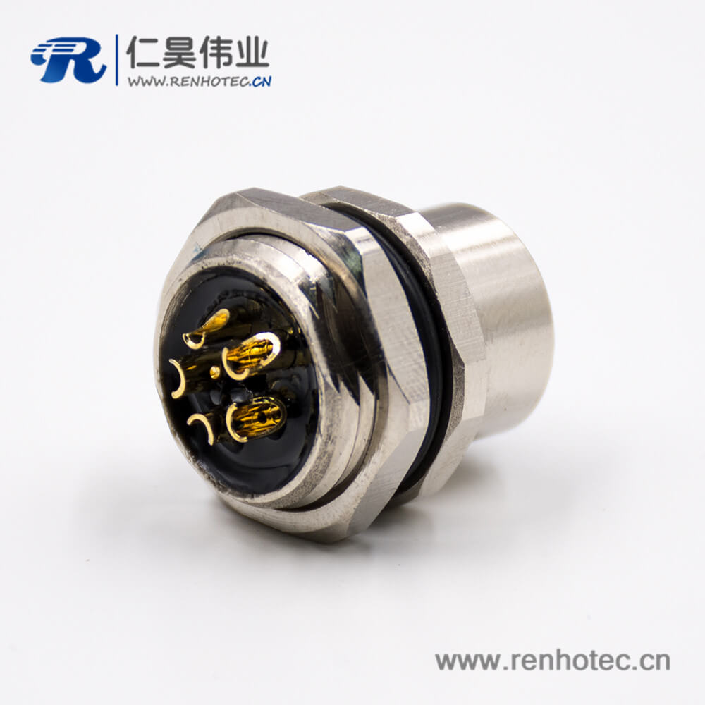 料号:M12-05-L-S-2-S-B 标签:M12,5芯,L扣,母头,直式,后锁板,板端插座,接线,焊接式