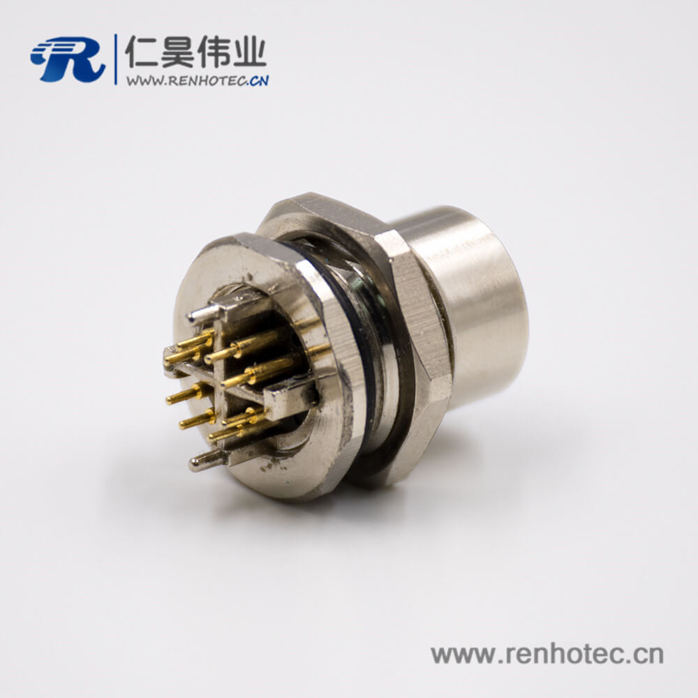 M12x扣直式8芯板端插座母头接PCB板传感器接插件