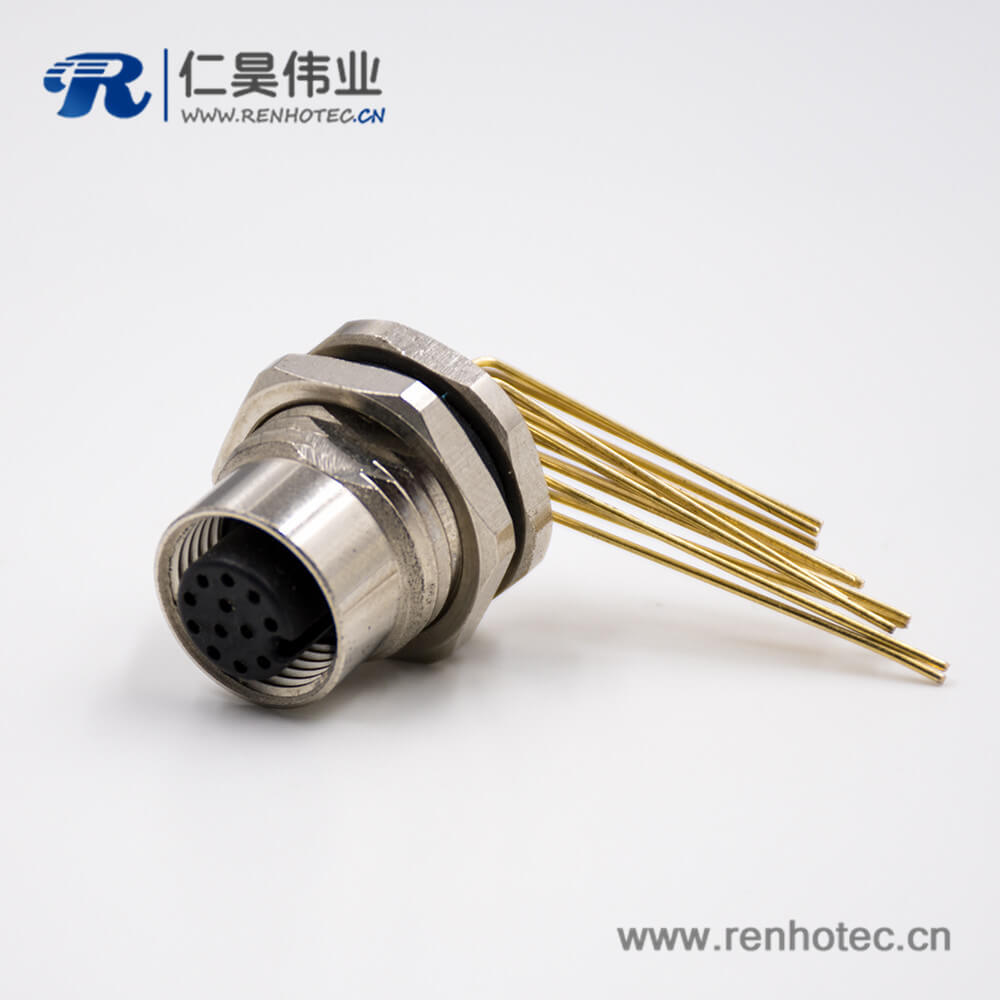 标签:M12板端插座,A扣,弯式,12芯,母头,前锁板,接PCB板