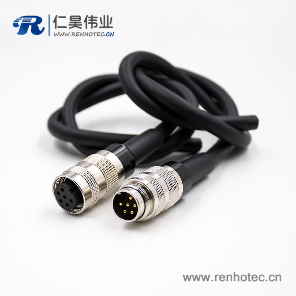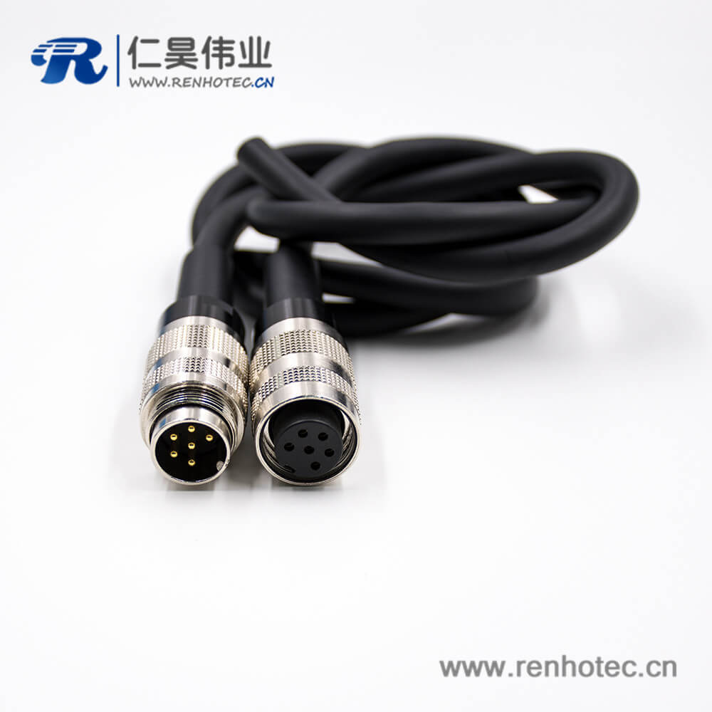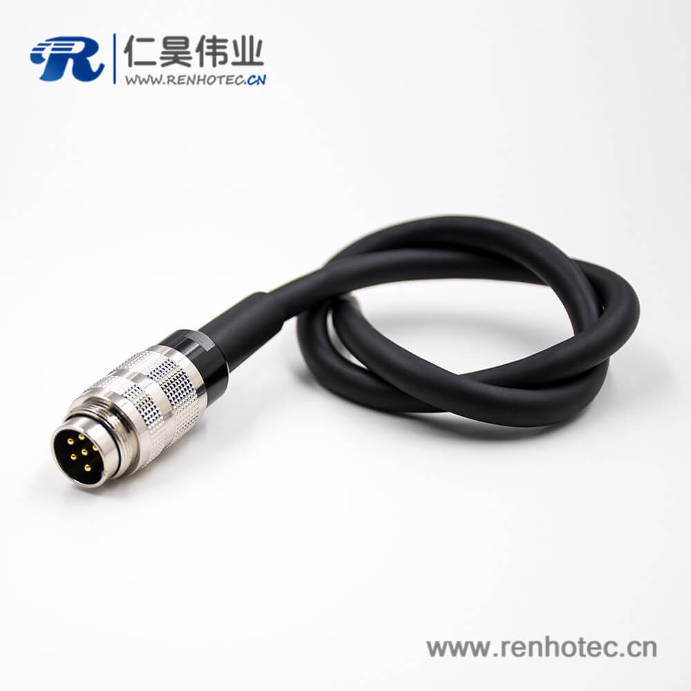 M16圆形接插件公头直式线束6芯A扣注塑成型接线焊接传感器