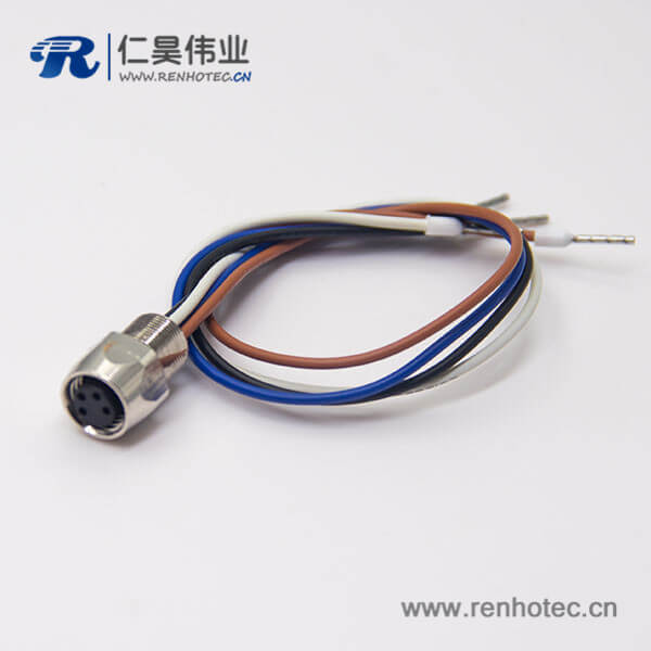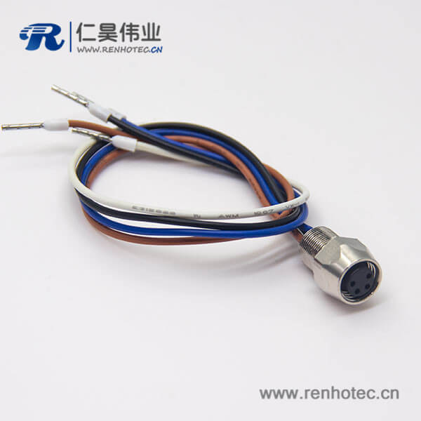 标签:M8,板端座子,后锁板,4芯,母头,直式,焊线,带屏蔽,防水,24AWG,1M