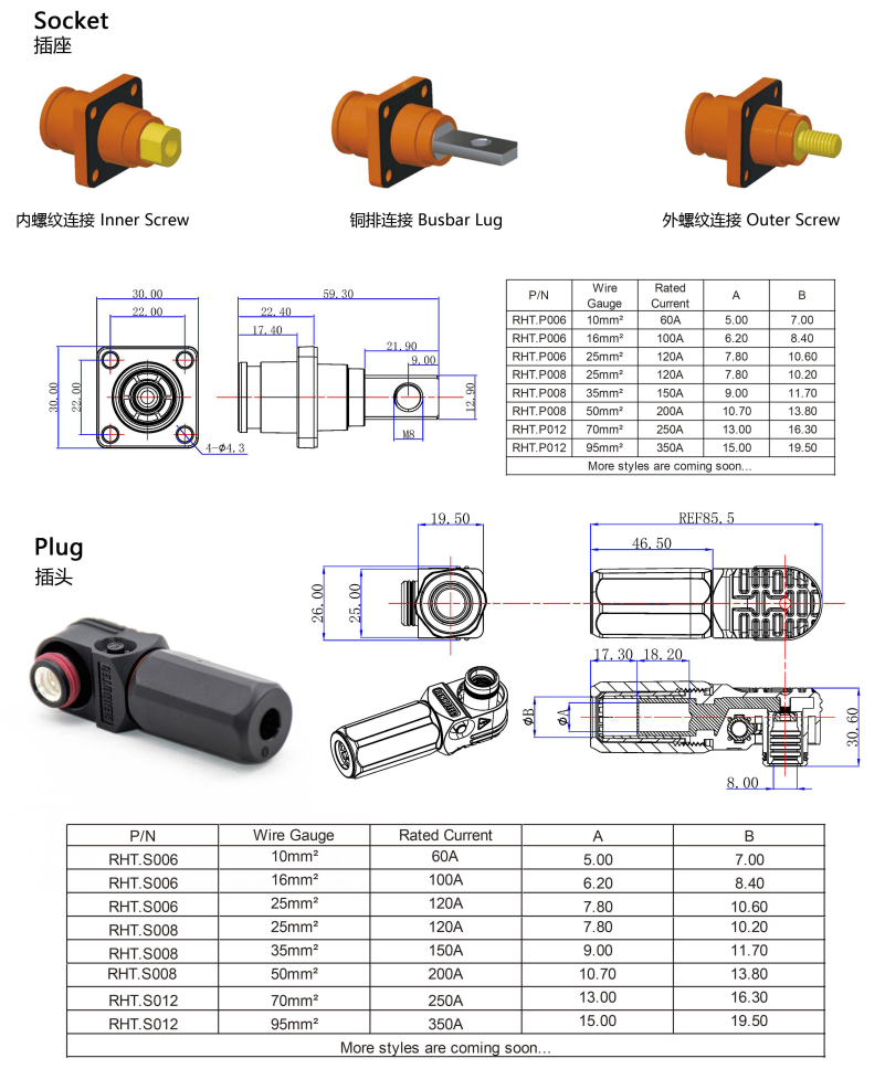 储能连接器主要用于串联储能系统的电池模块,使工人安装储能系统(ESS)更安全。它们广泛应用于储能、新型汽车和其他行业。储能连接器通过专业的CAE模拟设计,以满足客户的关键技术规范。我们的储能连接器范围从60A到480A,有各种款式可供选择,以适应不同的安装环境。