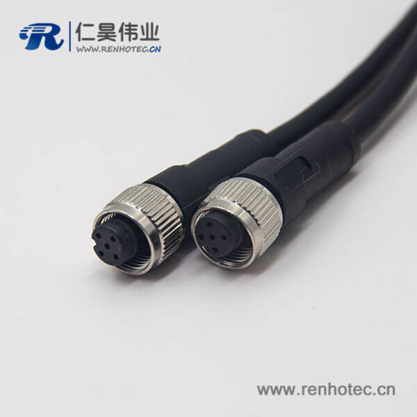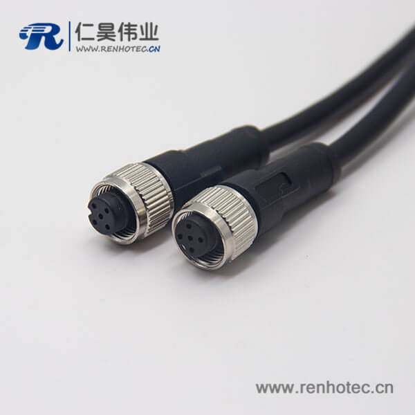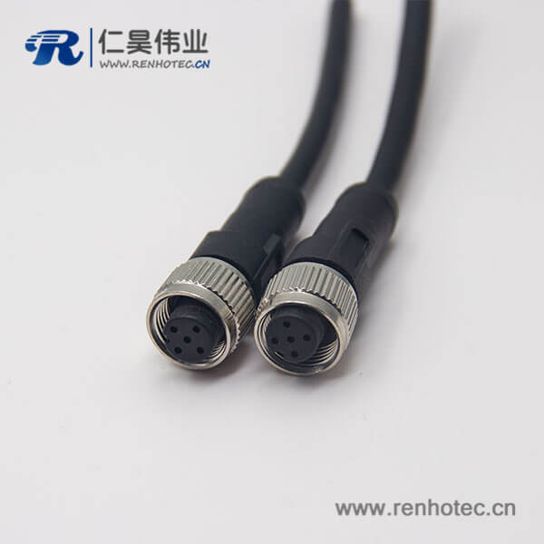 m12标准电缆A编码5芯母头直式180度不带屏蔽双边注塑线1M AWG22