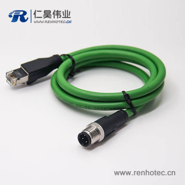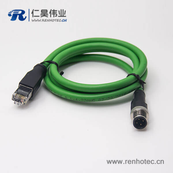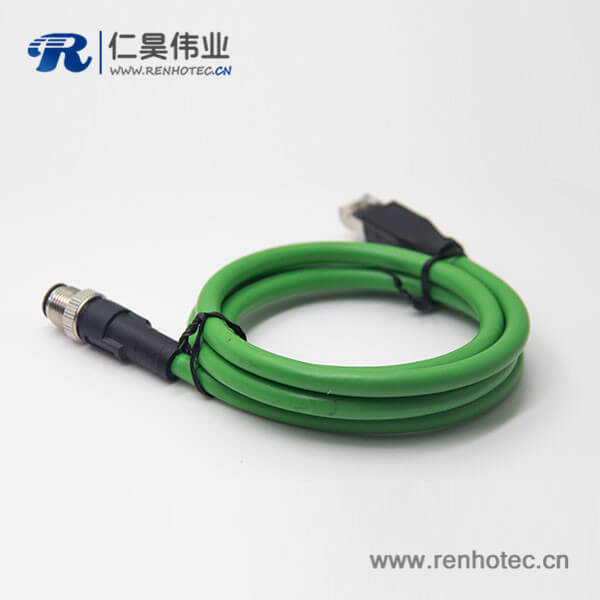 M12接头d型接头不带屏蔽4芯公头转RJ45水晶插头连线3米AWG22