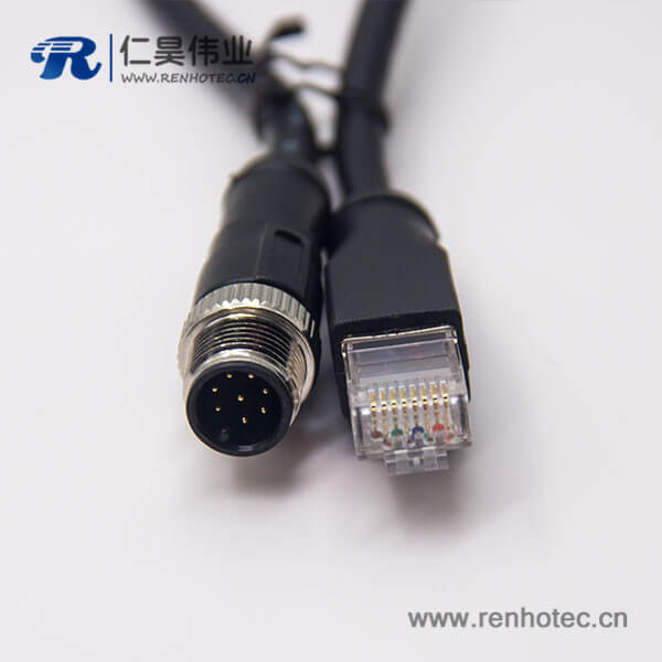 标签:M12,A 编码,线束,M12转RJ45,8芯,公转公,直式,不带屏蔽,1M AWG24