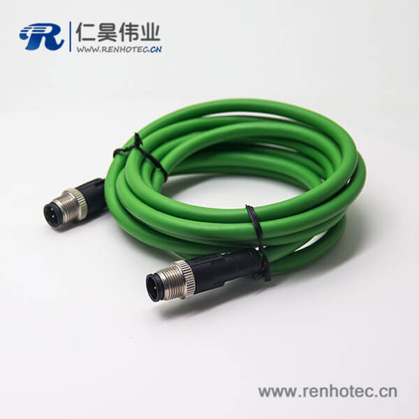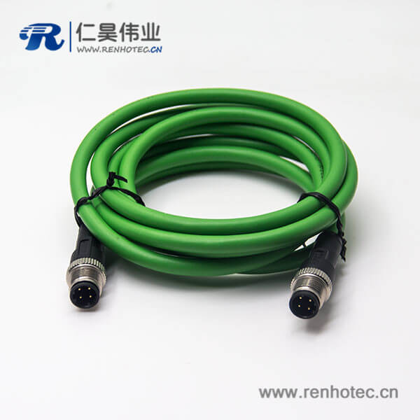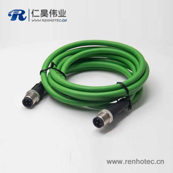 标签:M12,4芯,D编码,线束,公转公, 双边线,直式,焊线,不带屏蔽,3M AWG22