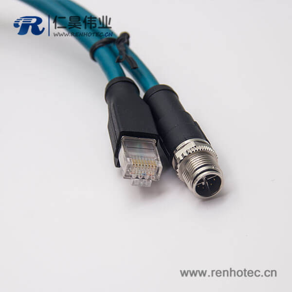 m12 8芯 X型转rj45电缆m12不带屏蔽直式公头转rj45直式水晶头1M AWG24