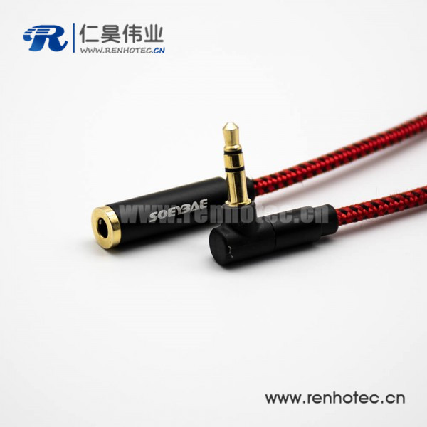 3极3.5MM镀金插头弯公对直母红色音频延长线0.5m-3米