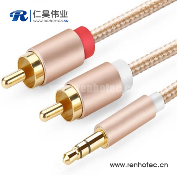 电视连接线3.5转2RCA双莲花无氧铜喇叭线
