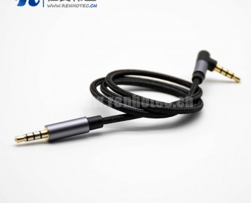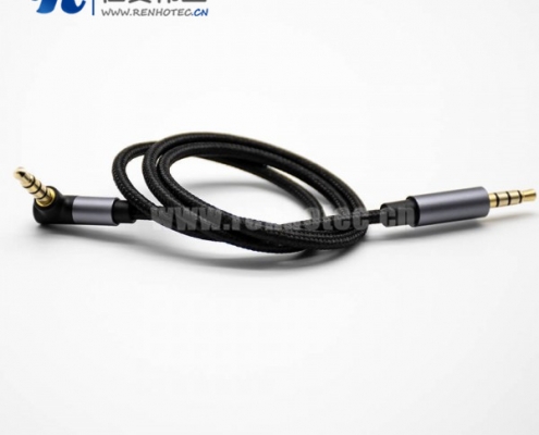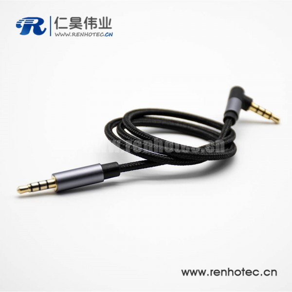 镀金耳机插头4极公转公直对弯黑色音频线0.5米-3米
