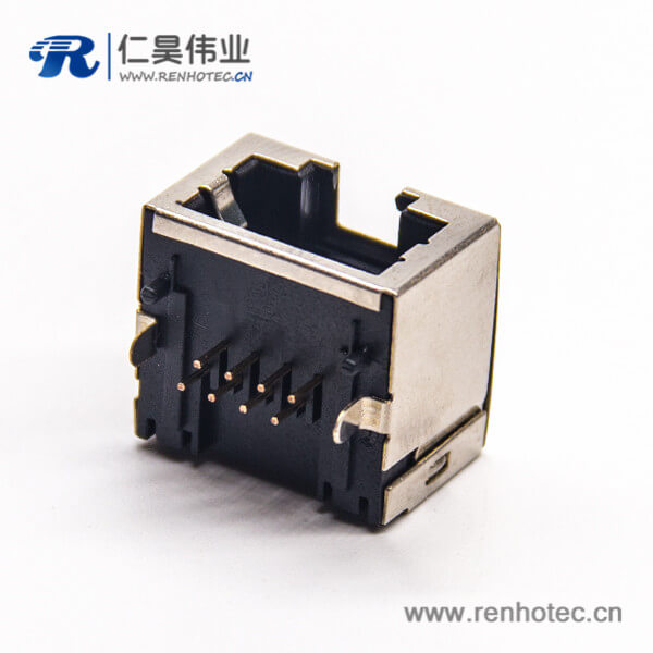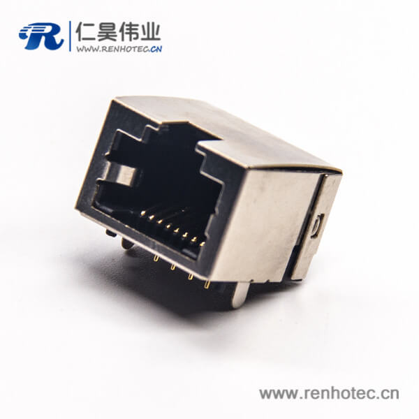 rj45网口座8p8c弯式半包带屏蔽插PCB板