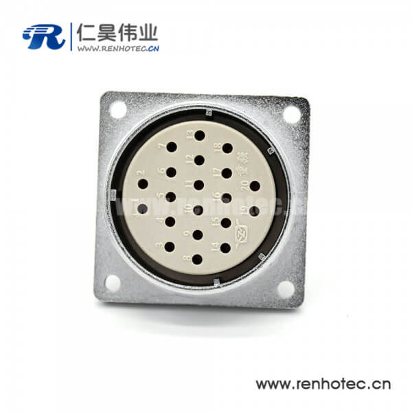 矩形20芯插座P40 20芯母头直式四孔法兰接插件