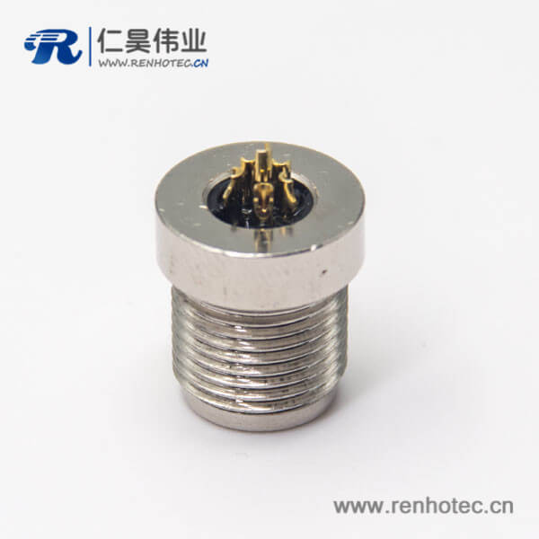 M8 6芯接插件A型前锁插座直式母头圆形接插件焊线