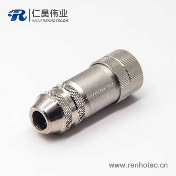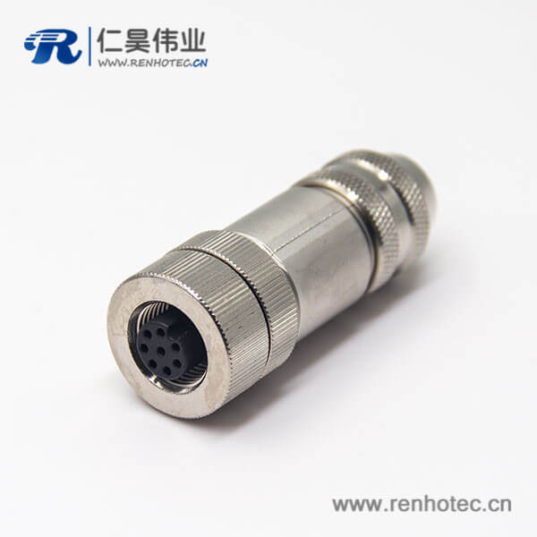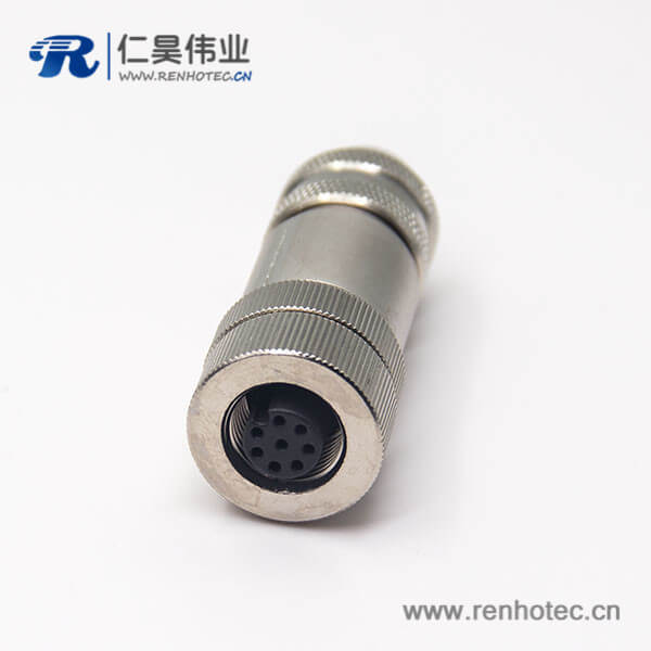 m12防水航空头8pin母头直式全金属接插件锁接A型编码