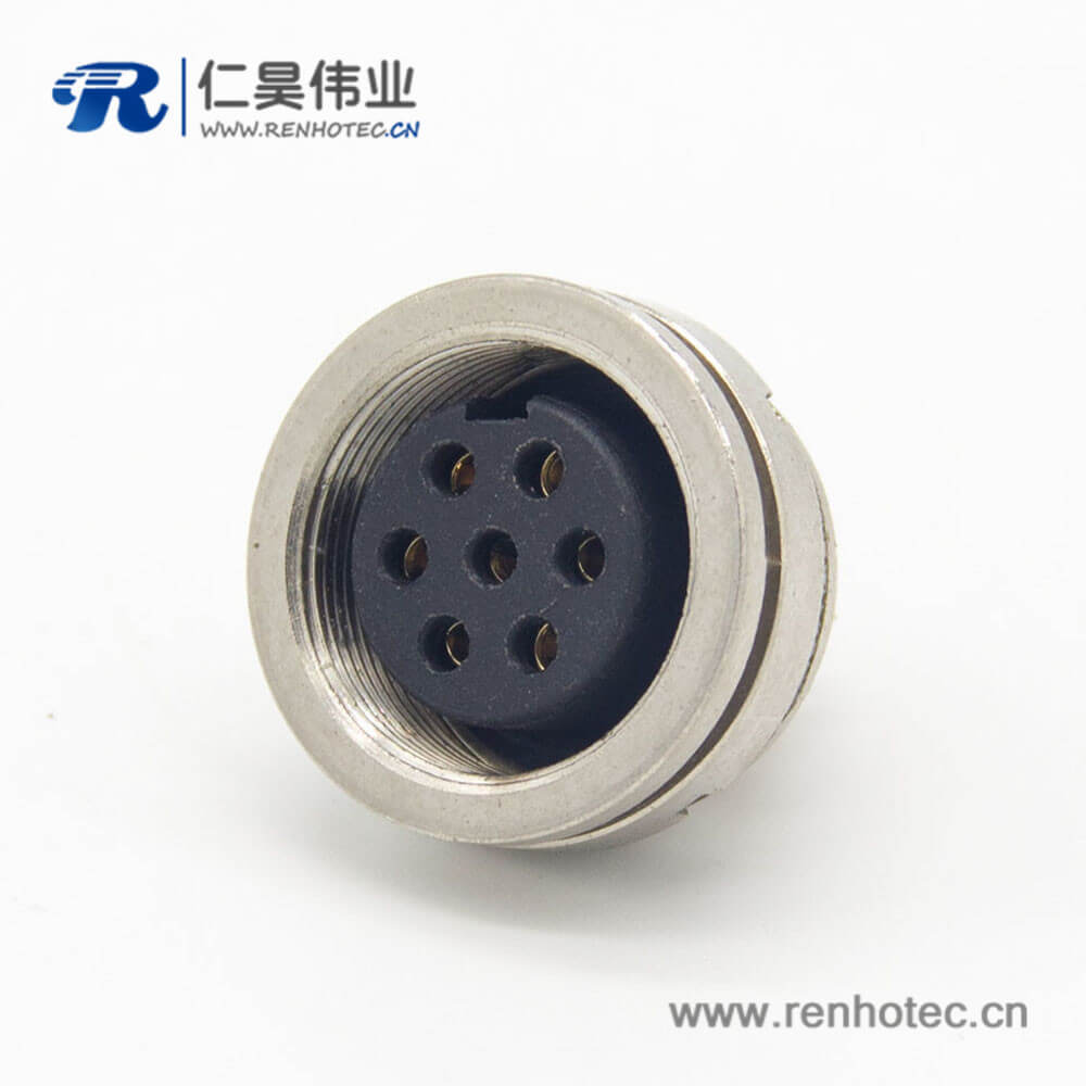 M系列接插件M16 7芯直式母插座后锁穿墙面板安装焊线