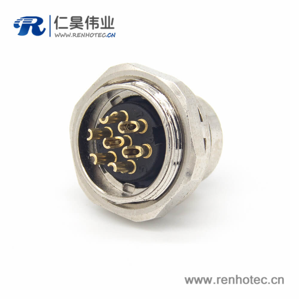 工业防水插座M16 7芯公头直式面板安装接插件