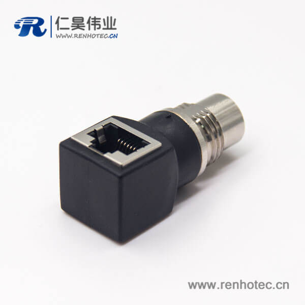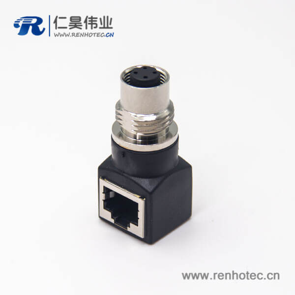 m12插座转rj45接插件m12A型母头转RJ45弯式插座