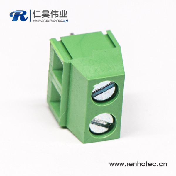 PCB端子绿色螺钉式2芯直式穿孔插PCB板
