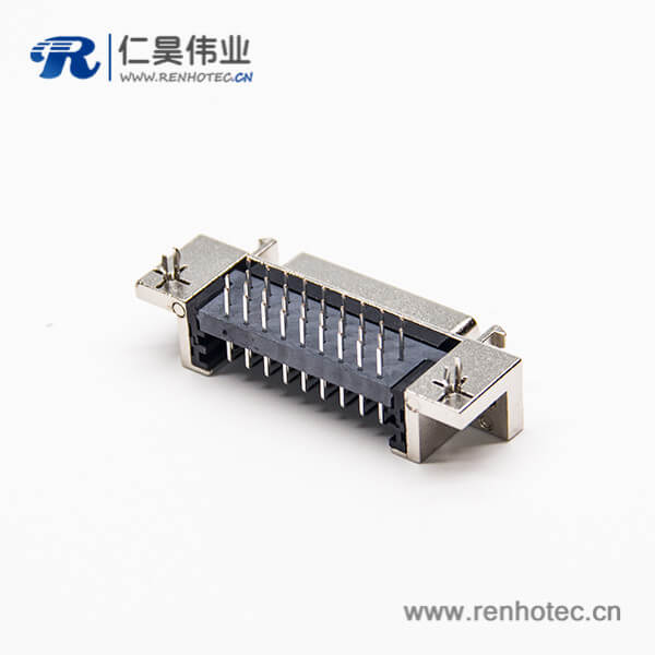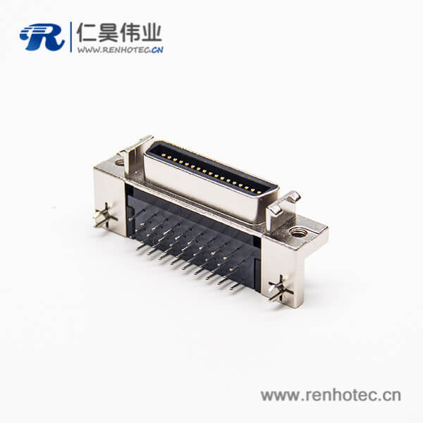 scsi db接插件36pin弯式母头带鱼叉脚插PCB板铆锁连接