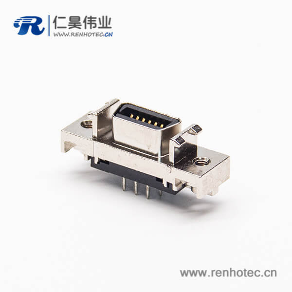 14pinSCSI母头接插件直式180度铆锁链接插PCB板