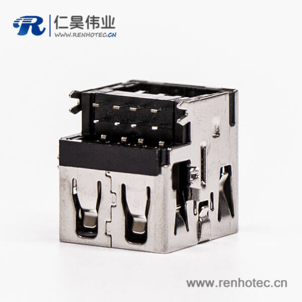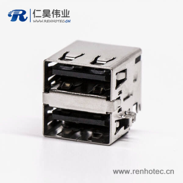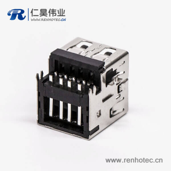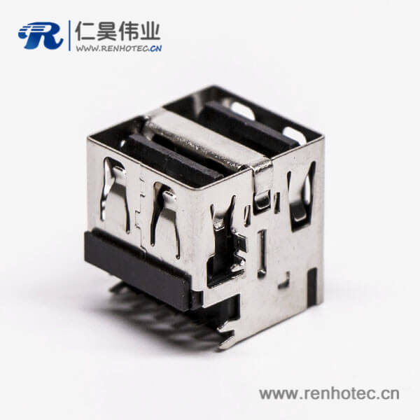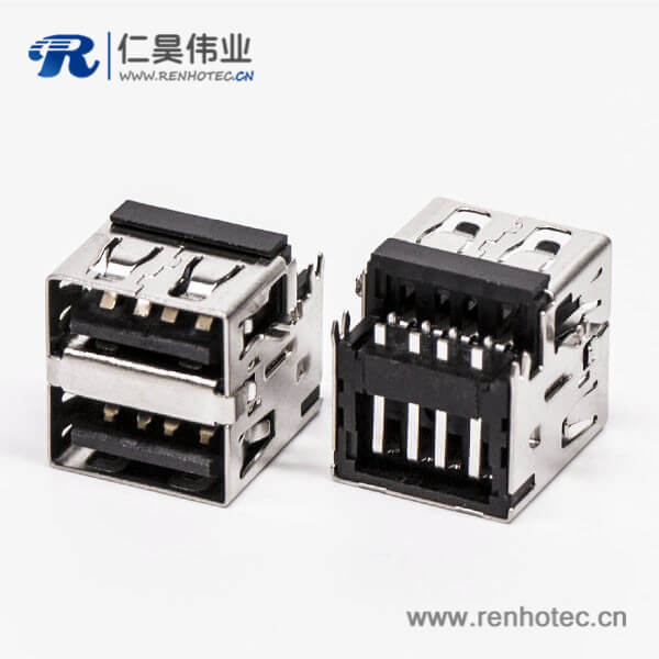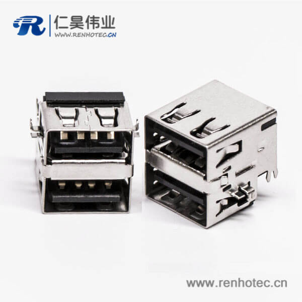 标签:USB2.0,母头,Type A,弯式,双端口,黑色胶芯,插孔,接PCB板