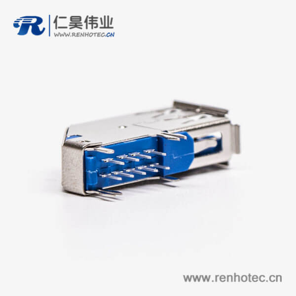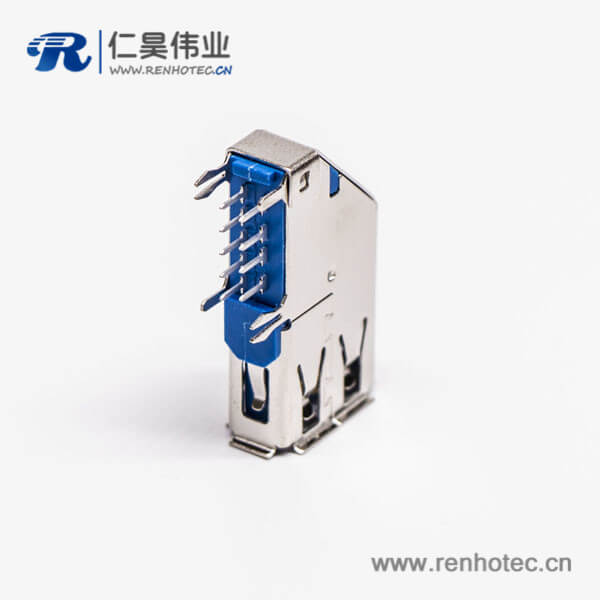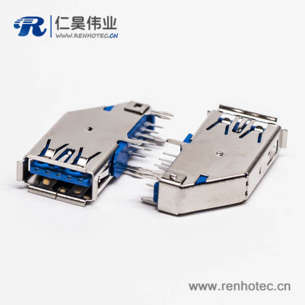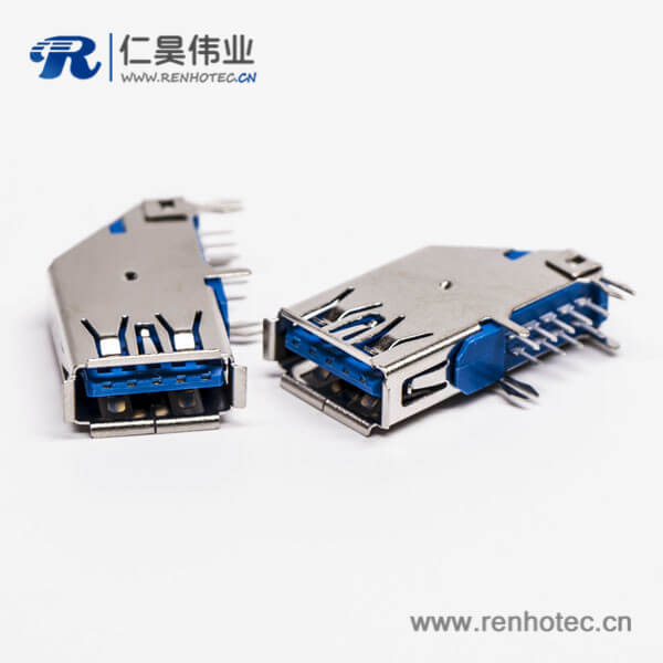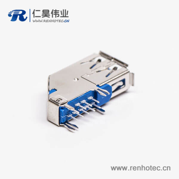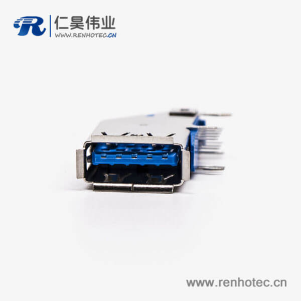 usb3.0母头type a 弯头侧插式蓝色胶芯接板