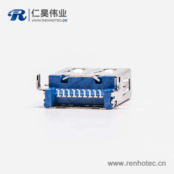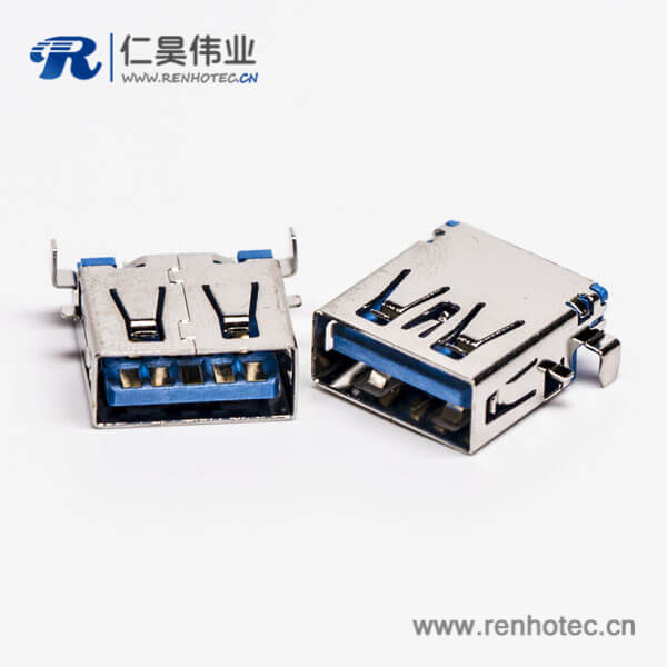 标签:USB3.0,Type A,母头,弯头.沉板,SMT,蓝色胶芯,PCB板,两脚插板